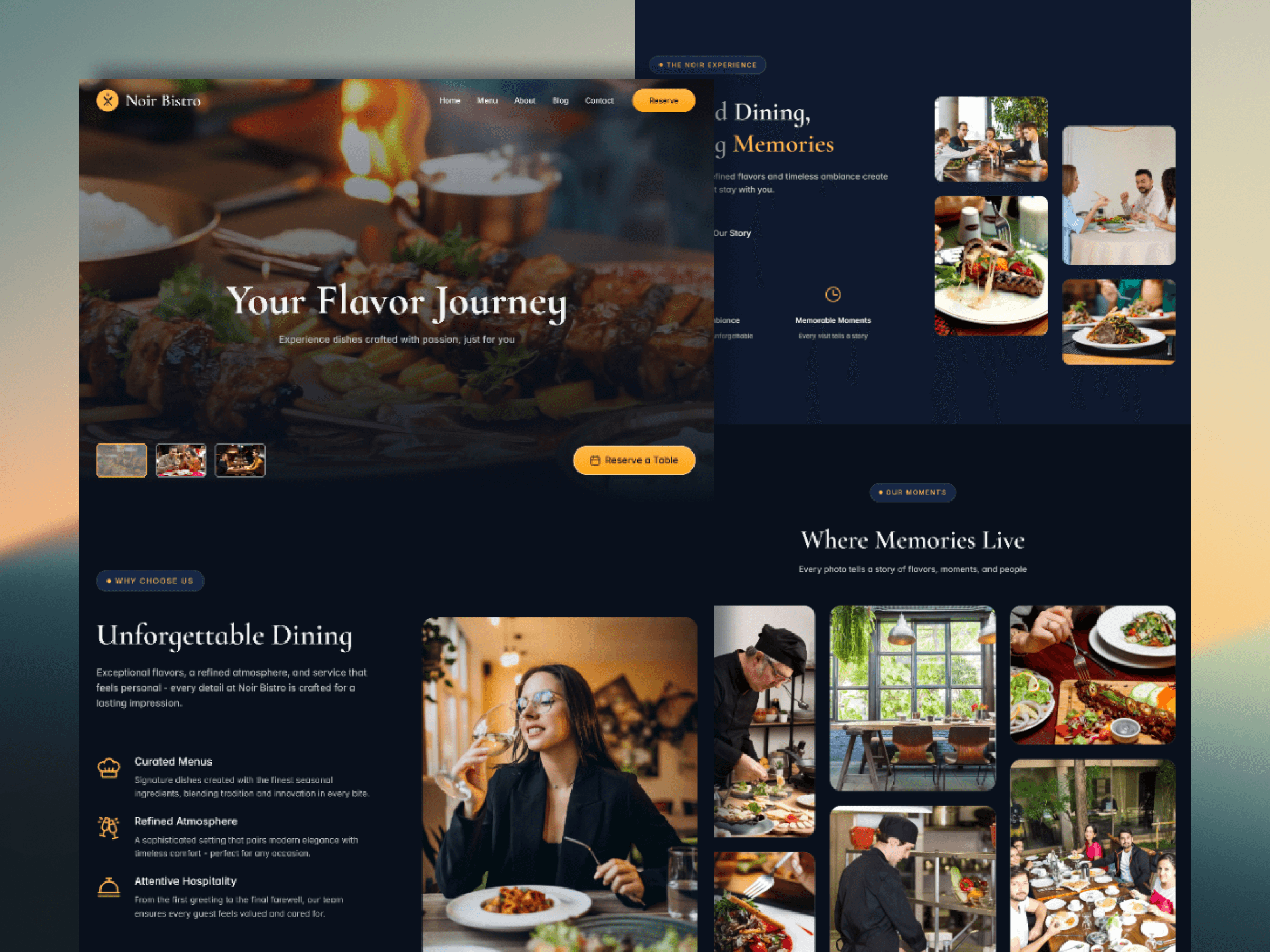 Noir Bistro is a premium Framer crafted for modern restaurants, cafés, and fine dining brands.
